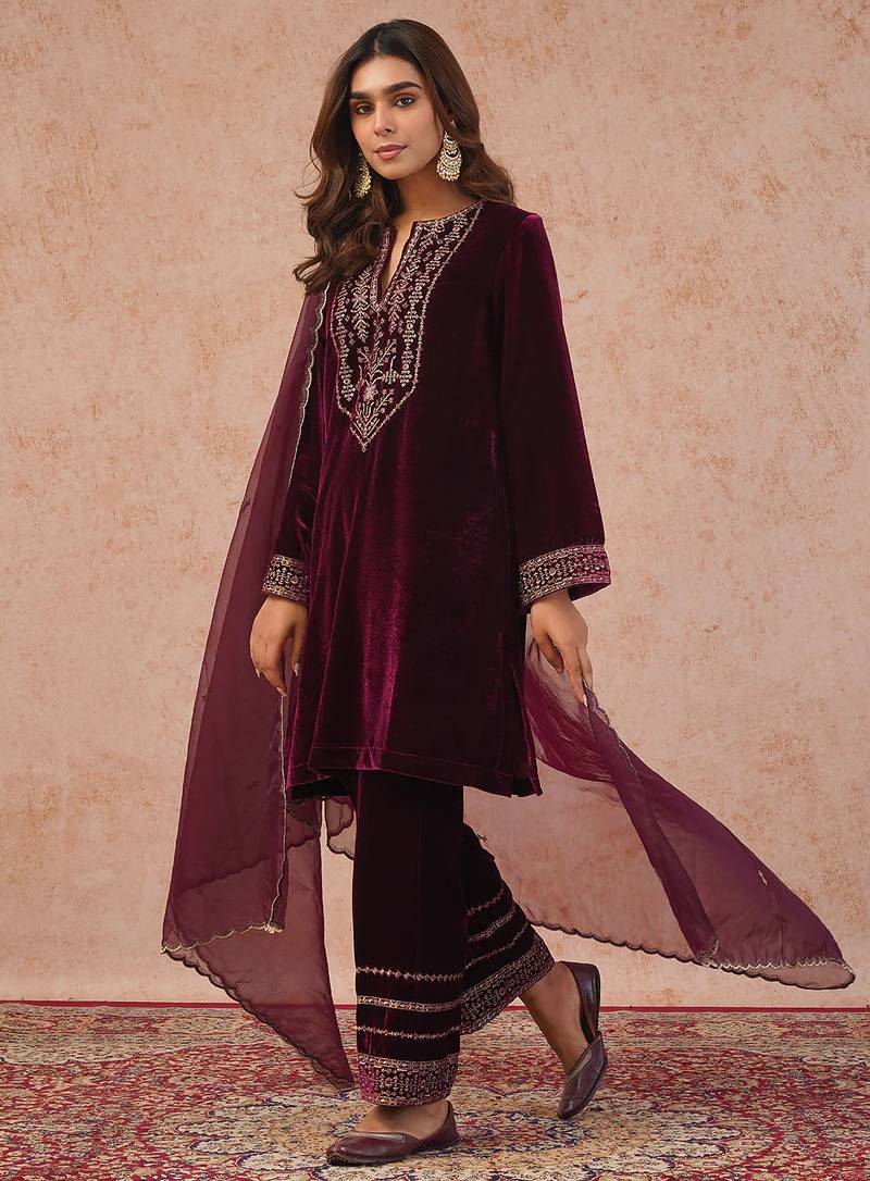 | Product Description | Velvet Kurta Pant Set With Dupatta For Women. Trendy Stylish Ethnic Fusion Salwar Suit Set Women Can Wear This Embroidery Kurta Set For Wedding Wear, Marriage Functions, Great For Parties And Festival Occasion. It Is Capable Of Making You Look Gorgeous. Wear It And Put Your Step In The World Of Fashion. It Looks Stunning Every Time You Match It With Accessories. Note: There Might Be Little Shade Variation Between The Actual Product And The Image Shown On The Screen Due To The Photography Effect. |