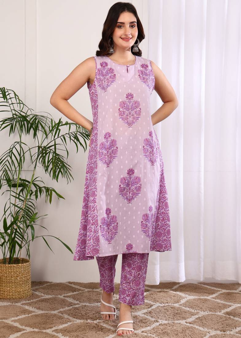 Introducing The Yash Gallery Women's Cotton Floral Print Calf Length Keyhole Neck Sleeveless A Line Kurta With Pant And Dupatta In A Serene Lavender Shade—A Perfect Blend Of Comfort, Style, And Tradition. Crafted From 100% Premium Cotton, This Ensemble Offers Breathability And Softness, Making It Ideal For All Day Wear In Any Season. The Delicate Floral Print Adds A Touch Of Femininity, While The Calf Length A Line Kurta Features A Graceful Keyhole Neckline And Sleeveless Design That Effortlessly Flatters Every Silhouette. Paired With Matching Pants And A Coordinating Dupatta, This Set Brings Harmony And Elegance To Your Wardrobe. The Lightweight Cotton Fabric Promises Comfort Without Compromising On Style, Making This Set Perfect For Casual Outings, Festive Occasions, Or Even Office Wear. The Versatile Lavender Hue Complements A Variety Of Accessories And Footwear, Allowing You To Personalize Your Look With Ease. Whether Dressed Up Or Down, This Kurta Set Radiates An Understated Charm That’s Both Timeless And Contemporary. Caring For Your Yash Gallery Kurta Is Simple: Machine Wash Cold With Like Colors And Tumble Dry On Low Or Line Dry To Maintain Its Vibrant Print And Fabric Quality. Embrace Handcrafted Elegance And Elevate Your Ethnic Wardrobe With This Thoughtfully Designed, Beautiful Floral Print Kurta Set. Treat Yourself Or Gift A Loved One A Piece Of Artisan Craftsmanship That Merges Comfort, Style, And Tradition Into One Stunning Ensemble.