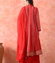| Product Description | A Festive Red Anarkali Set With Chinon Kurta, Dupatta, And Umbrella Plazo. Hand Embroidered With Mirror, Pearl, And Sequin Detailing. |