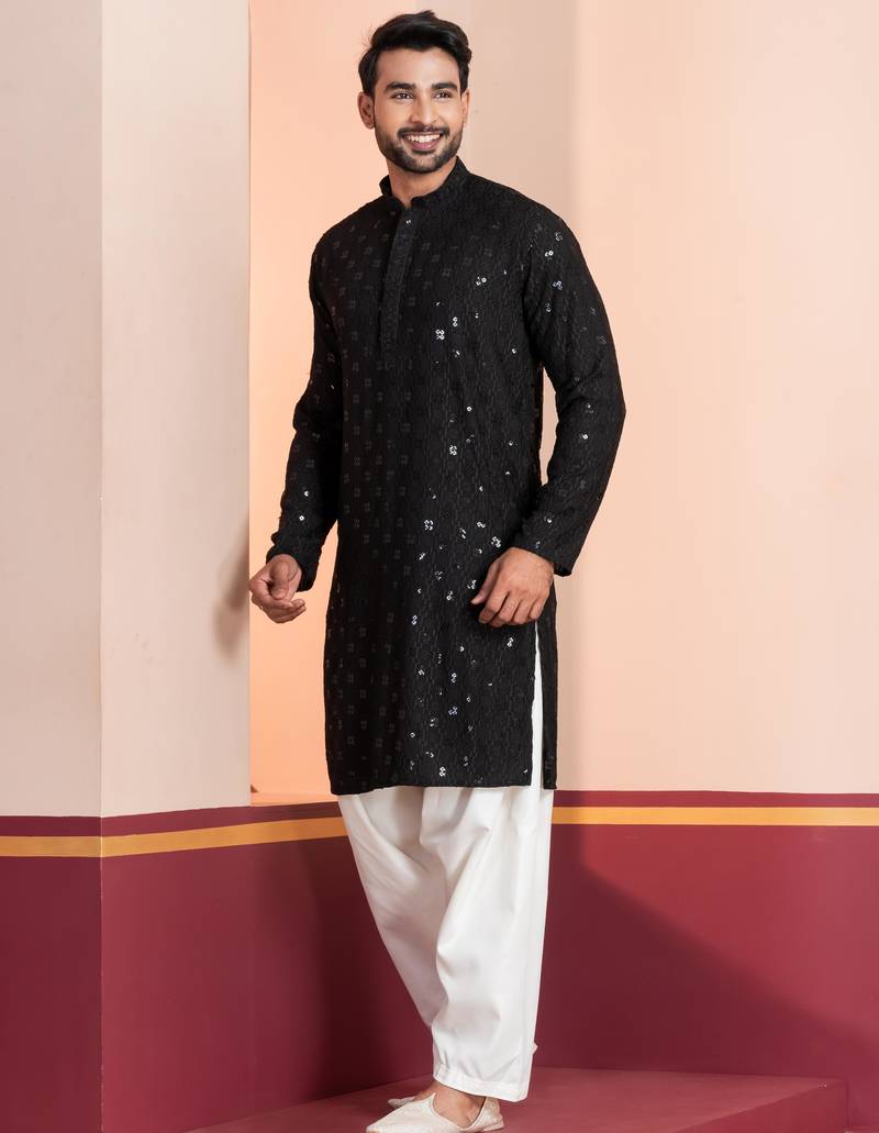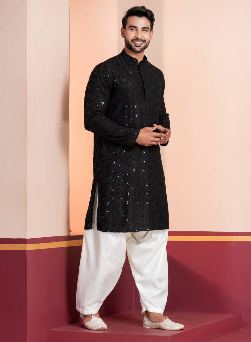 | Product Description | Step Into Timeless Elegance With This Men Black Embroidery Sequence Kurta Patiala Set For Festive, Reception, Weddings, Designed To Bring Out Your Refined Traditional Charm. Crafted From A Premium Sequence Fabric, This Set Ensures All Day Comfort While Maintaining A Crisp, Structured Look. |