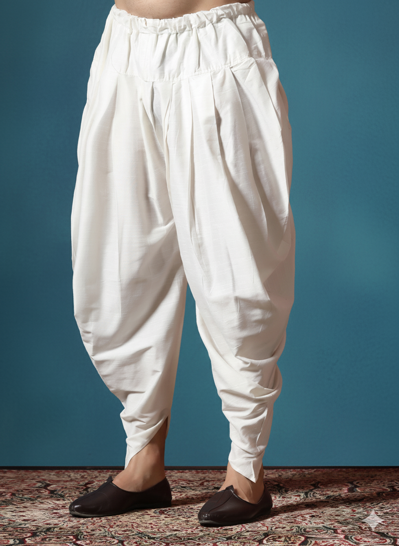 Cream plain dupion silk dhoti for festive, reception, weddings