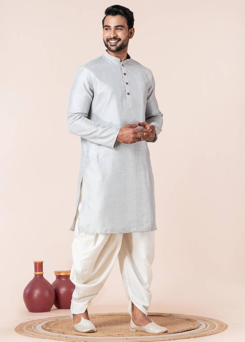 Grey embroidery bangalorian kurta dhoti set for festive, reception, weddings
