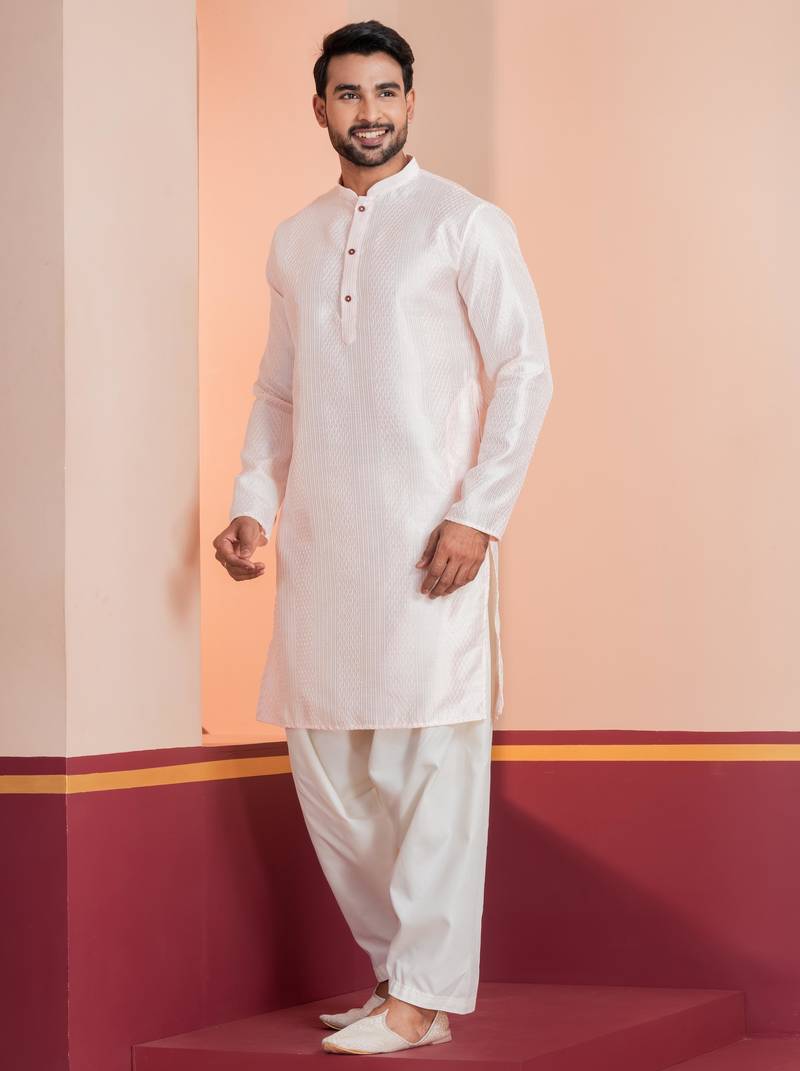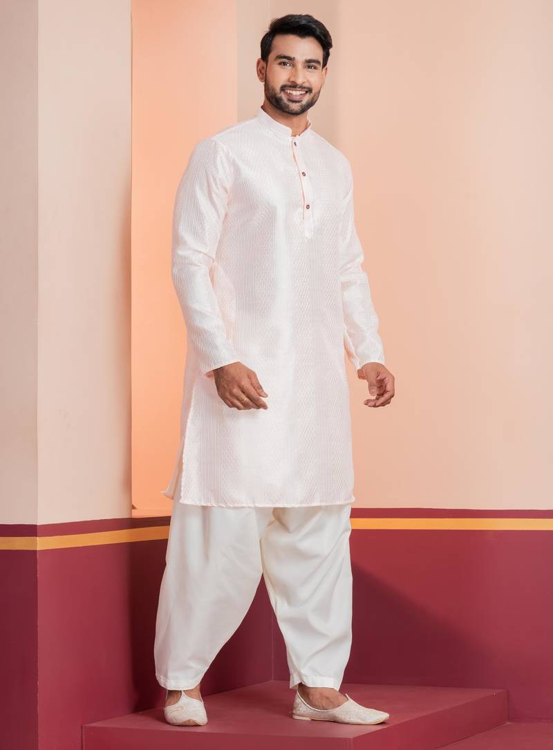 | Product Description | Step Into Timeless Elegance With This Men Peach Embroidery Bangalorian Kurta Patiala Set For Festive, Reception, Weddings, Designed To Bring Out Your Refined Traditional Charm. Crafted From A Premium Bangalorian Fabric, This Set Ensures All Day Comfort While Maintaining A Crisp, Structured Look. |