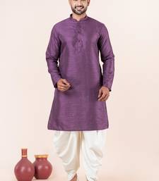 Purple embroidery bangalorian kurta dhoti set for festive, reception, weddings