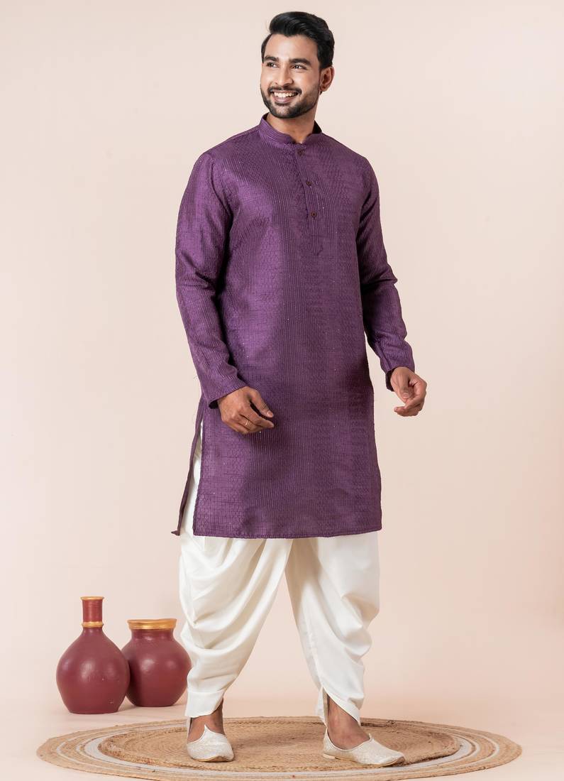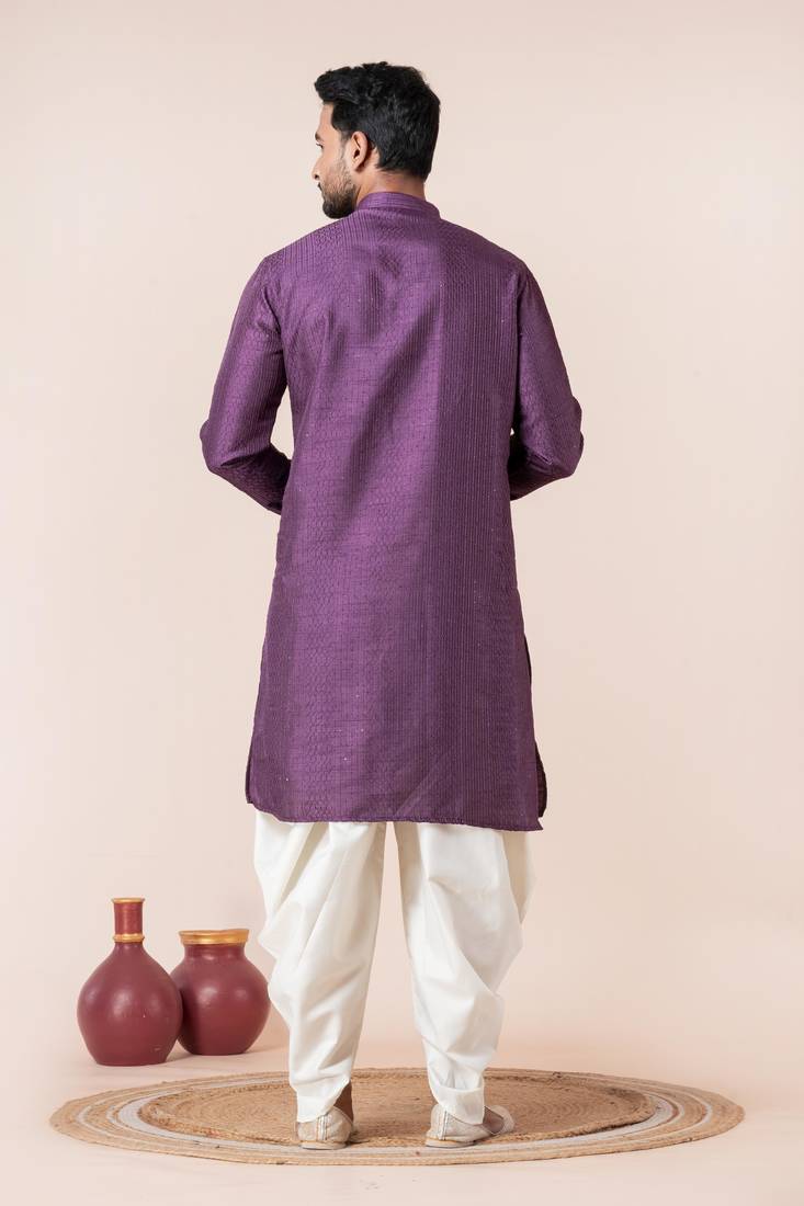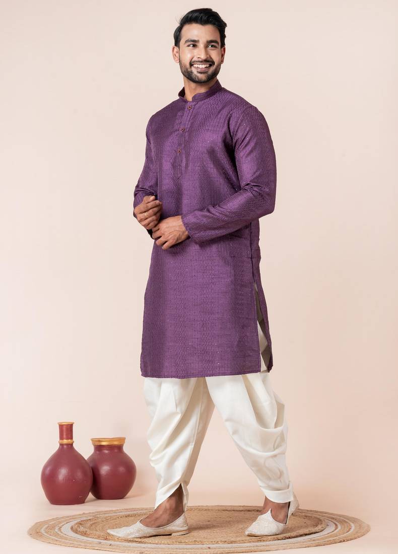 | Product Name | Purple Embroidery Bangalorian Kurta Dhoti Set For Festive, Reception, Weddings | |
