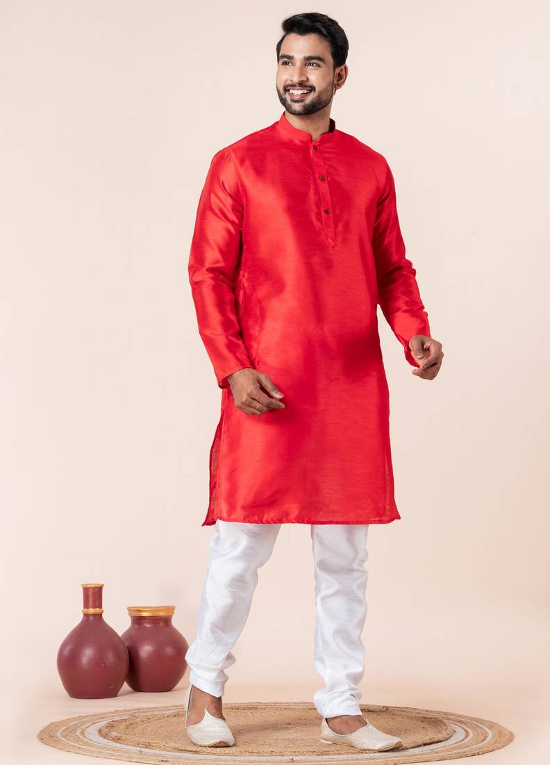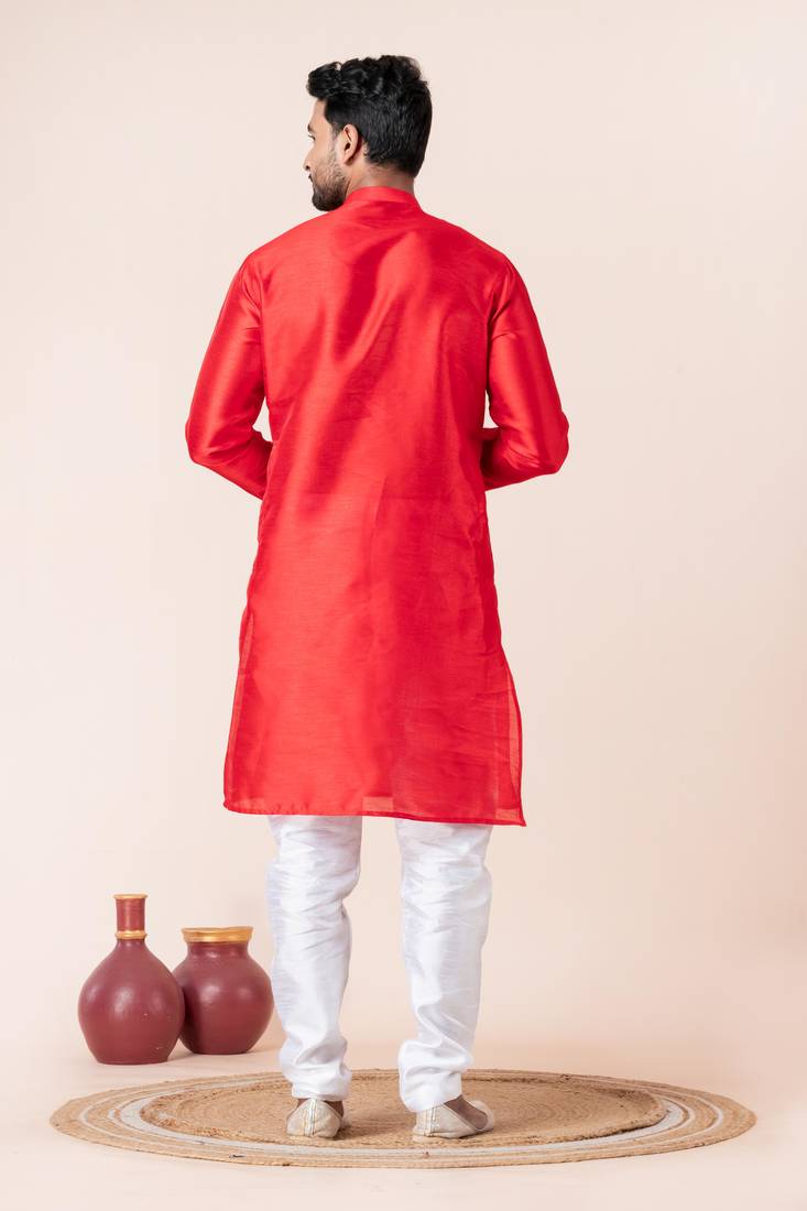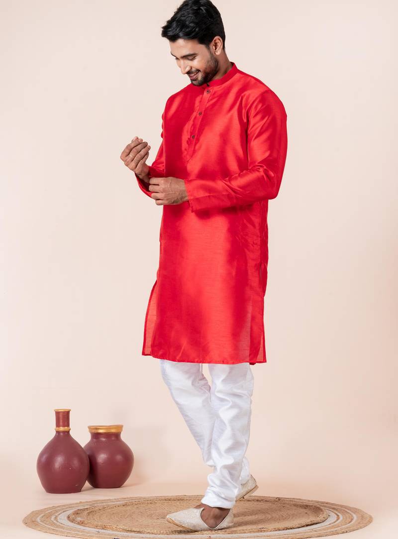 | Product Description | Step Into Timeless Elegance With This Men Red Plain Dupion Silk Kurta Churidar Set For Festive, Reception, Weddings, Designed To Bring Out Your Refined Traditional Charm. Crafted From A Premium Dupion Silk Fabric, This Set Ensures All Day Comfort While Maintaining A Crisp, Structured Look. |