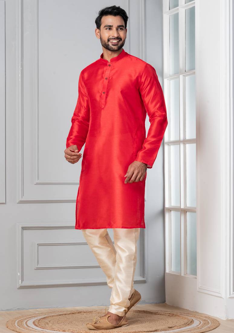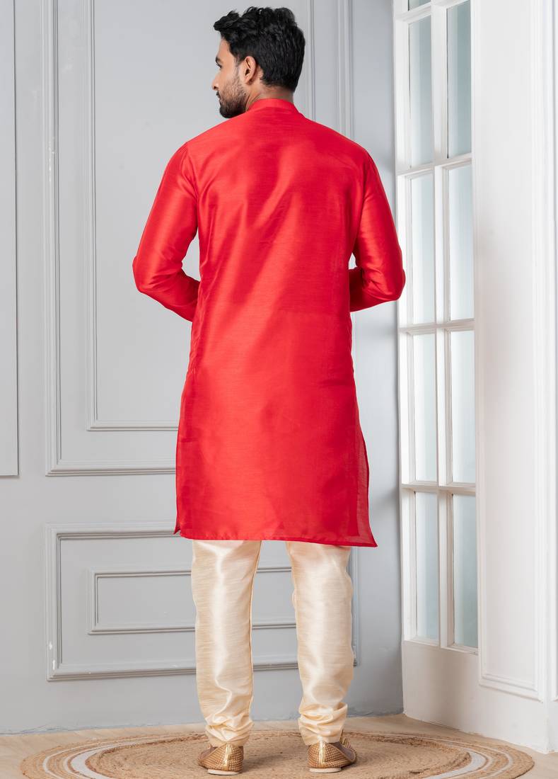 | Product Description | Step Into Timeless Elegance With This Men Red Plain Dupion Silk Kurta Churidar Set For Festive, Reception, Weddings, Designed To Bring Out Your Refined Traditional Charm. Crafted From A Premium Dupion Silk Fabric, This Set Ensures All Day Comfort While Maintaining A Crisp, Structured Look. |