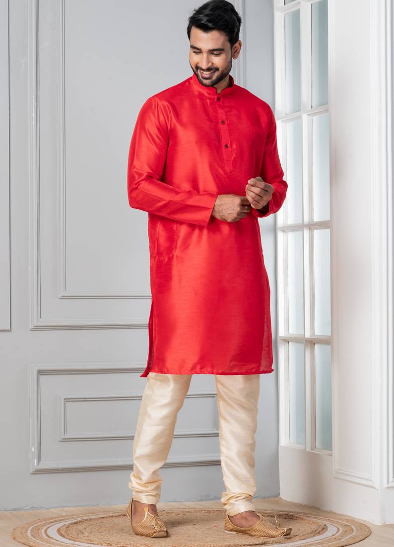 | Product Name | Red Plain Dupion Silk Kurta For Festive, Reception, Weddings | |