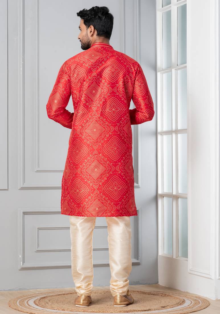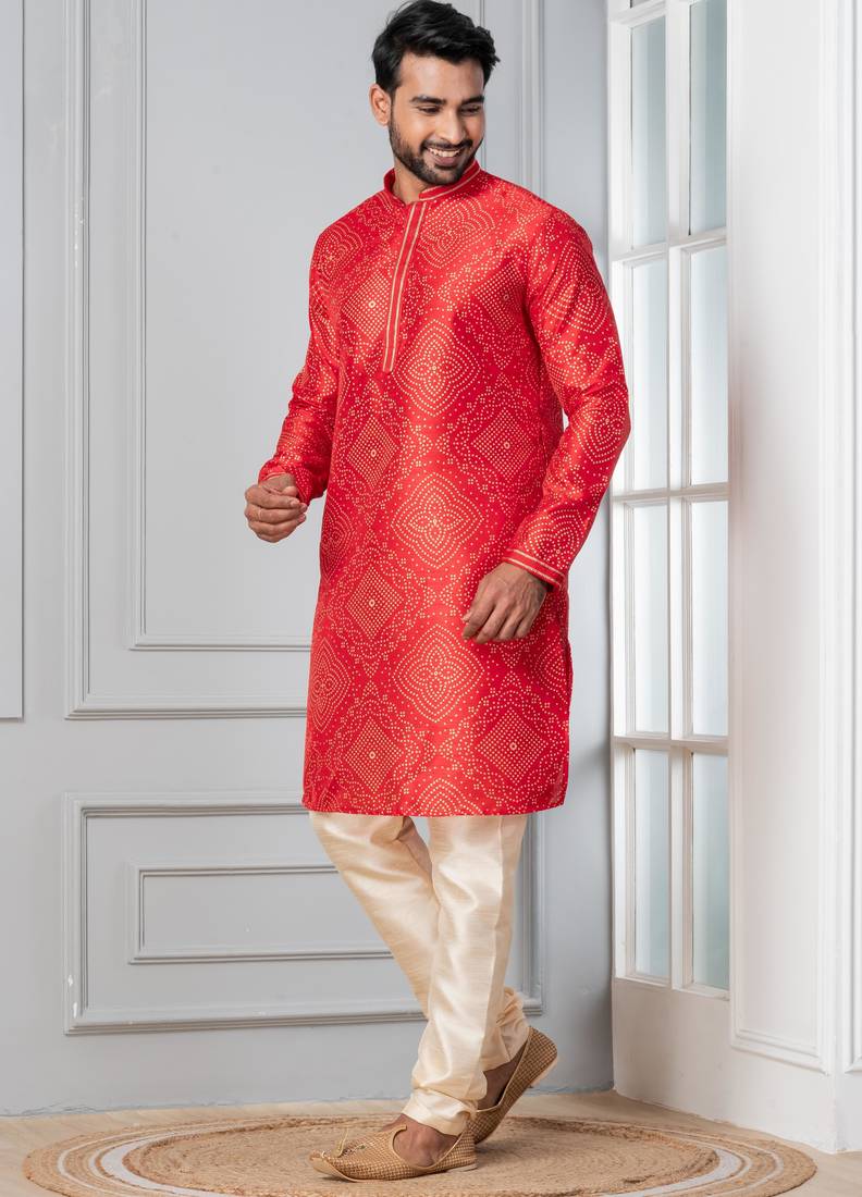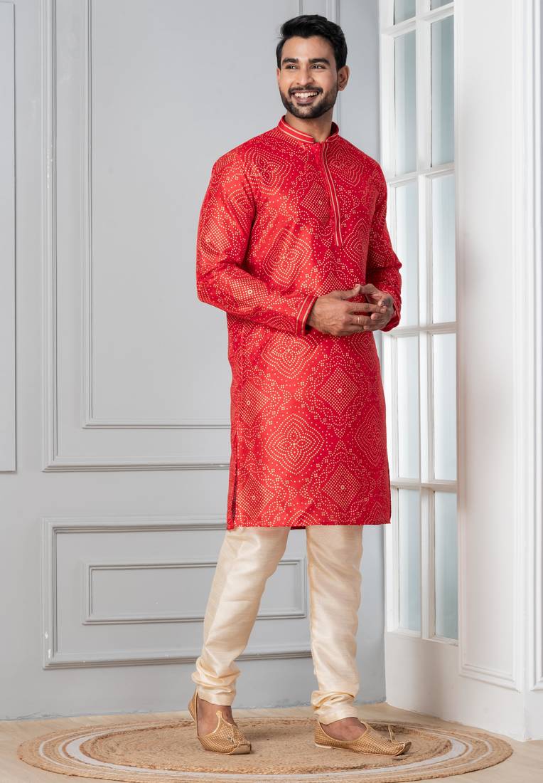 | Product Description | Step Into Timeless Elegance With This Men Red Printed Dupion Silk Kurta Churidar Set For Festive, Reception, Weddings, Designed To Bring Out Your Refined Traditional Charm. Crafted From A Premium Dupion Silk Fabric, This Set Ensures All Day Comfort While Maintaining A Crisp, Structured Look. |