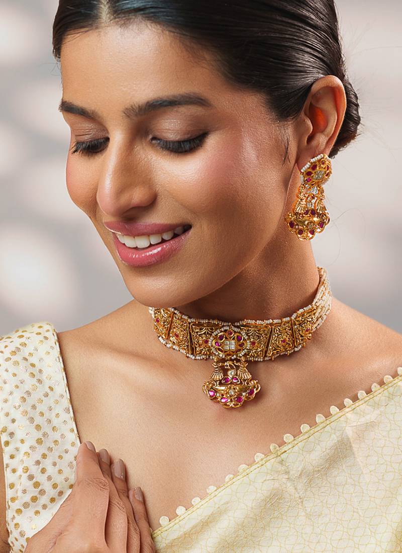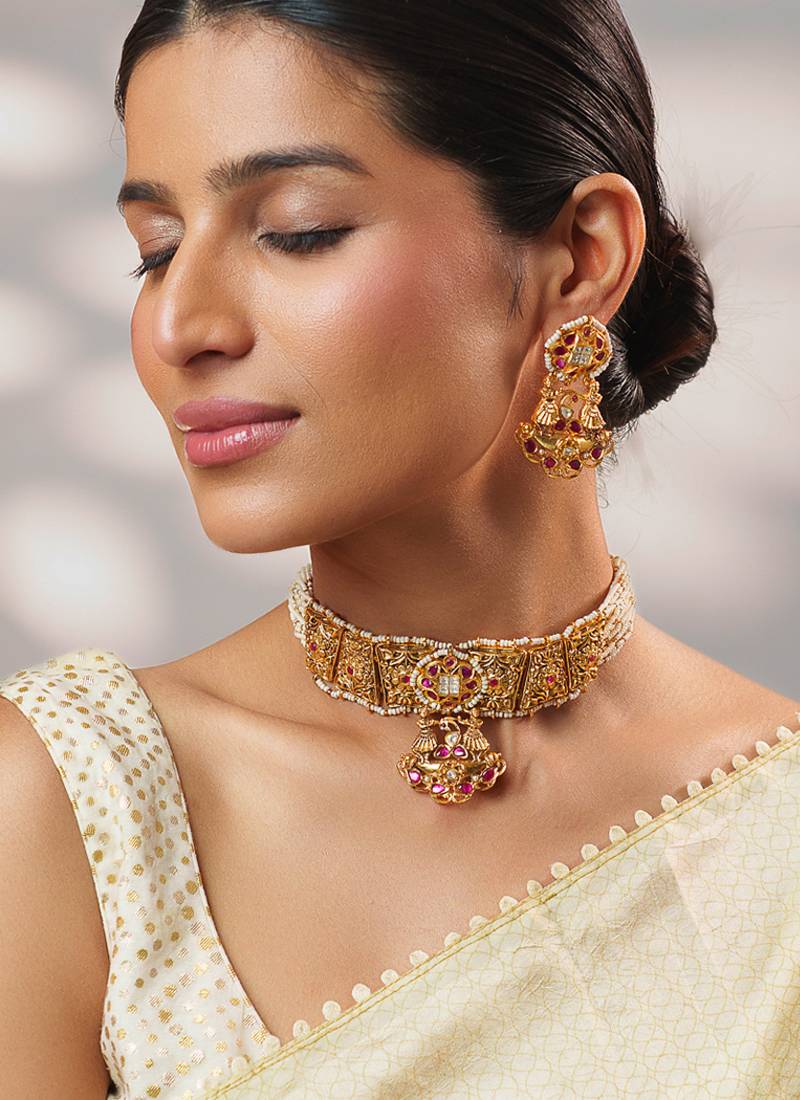 | Product Name | Gold Plated Kundan Temple Choker Necklace Set | |