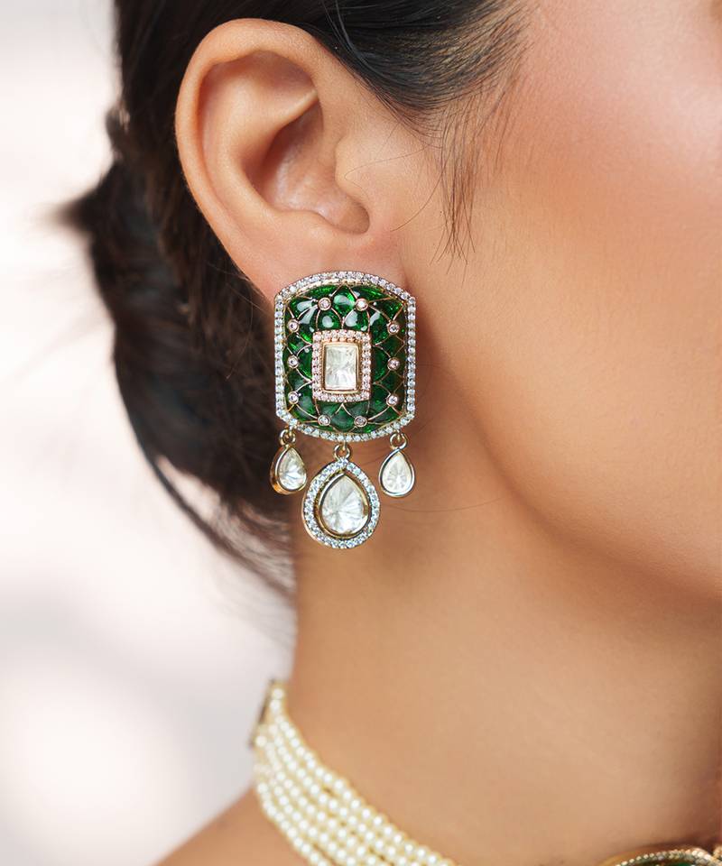 | Product Description | This Two Tone Plated Kundan Green Stone Choker Necklace Set Showcases Regal Elegance And Intricate Craftsmanship. Adorned With Beautifully Set Green Stones And A Striking Dual Tone Finish, It Offers A Luxurious, Statement Appeal. Perfect For Weddings, Festive Celebrations, Or Special Occasions, It Enhances Traditional Ensembles With Rich Color, Timeless Charm, And Refined Sophistication.