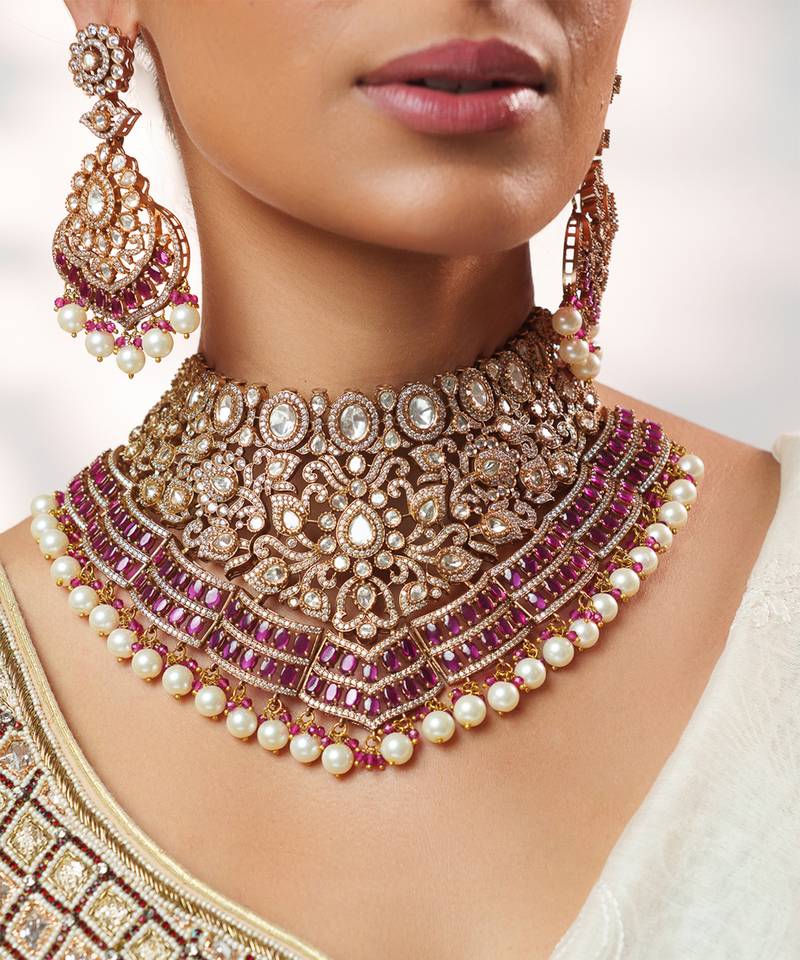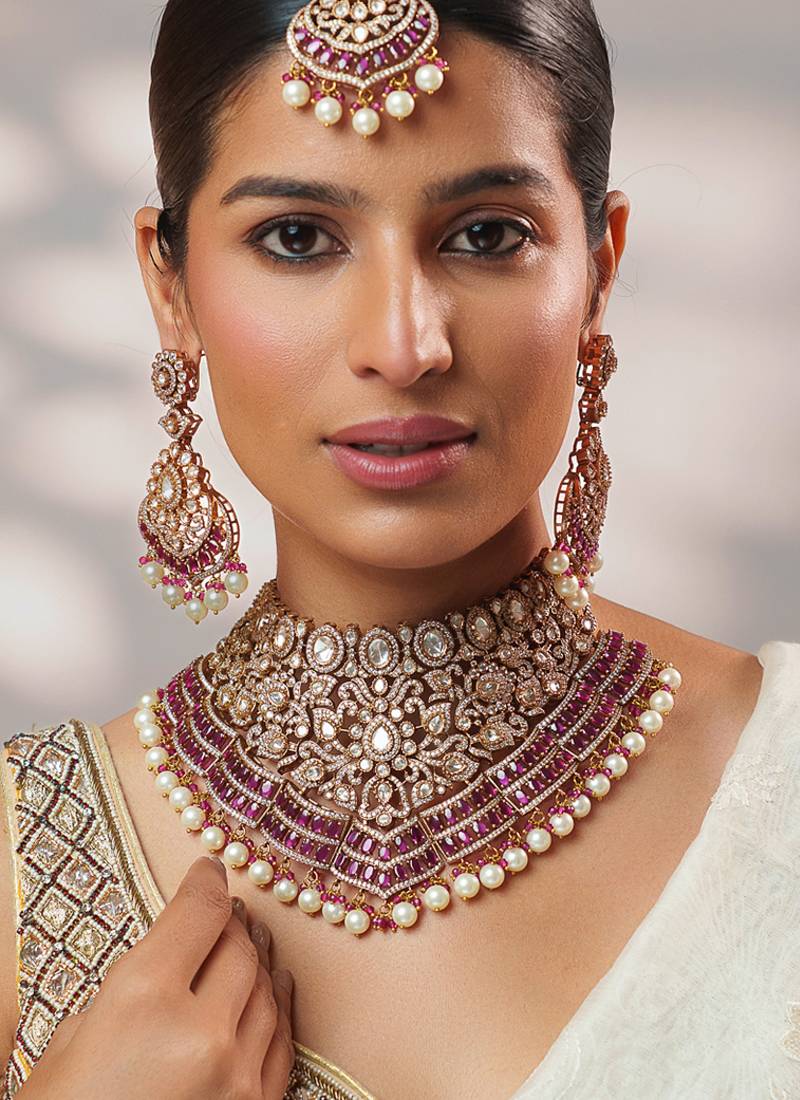 | Product Name | Two Tone Plated Kundan Pink Stone Necklace Set | |